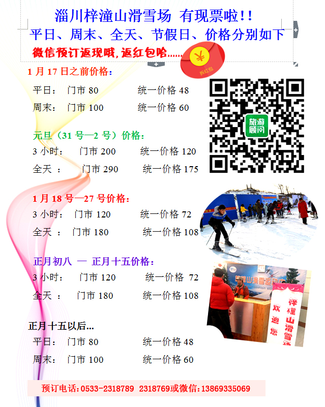 淄博梓潼山滑雪場門票預訂,請聯(lián)系客服:0533-2318789 2318769